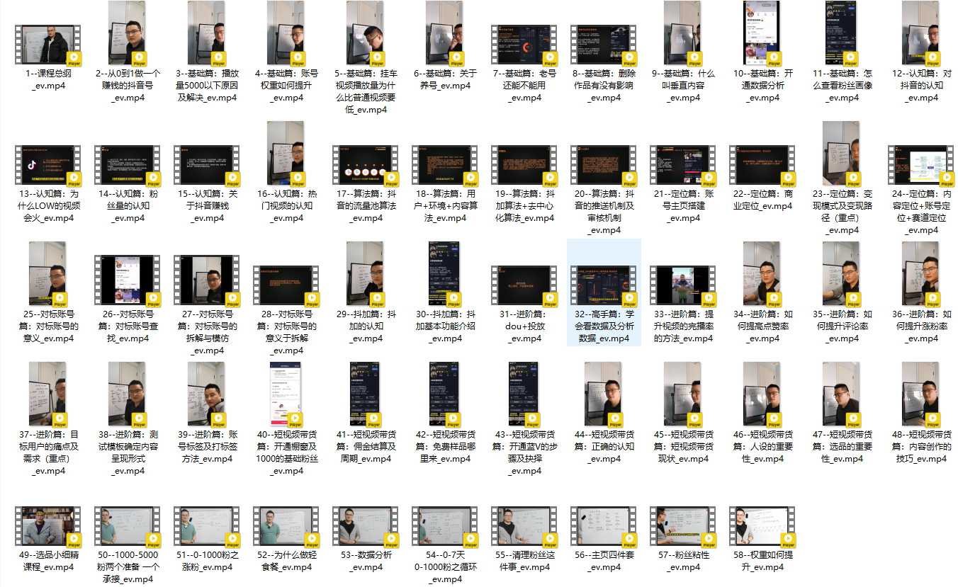 K哥短视频运营底层逻辑与实操课从0-1做一个赚钱的抖音号价值1758元官方同款课程视频资源!