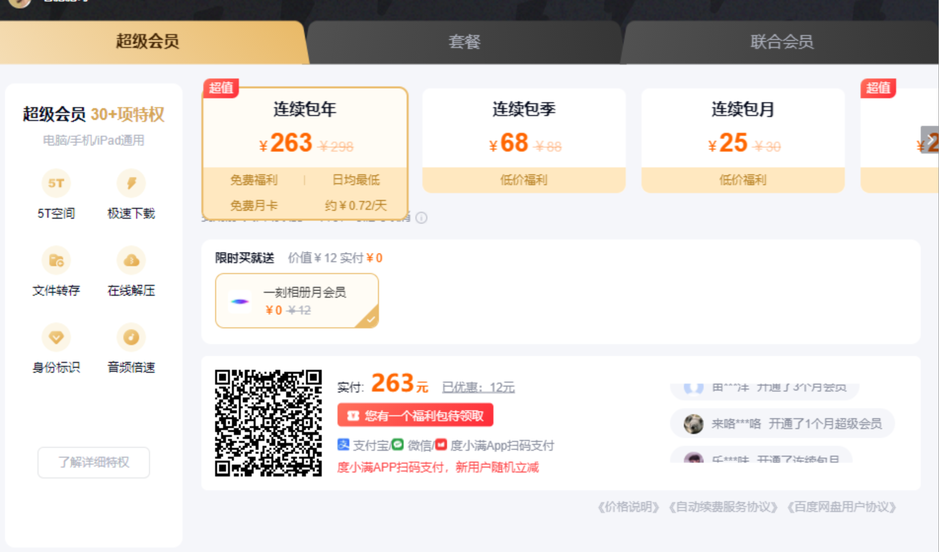 先说说超级会员,包年非新用户连续包年298,新用户263;非新用户连续包月25,新用户包月18。连续包就是自动扣款的意思!